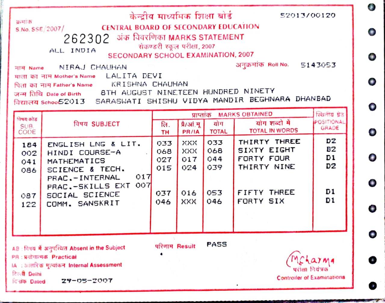 | Exam | Full Marks | Pass Marks | Marks Obtained |