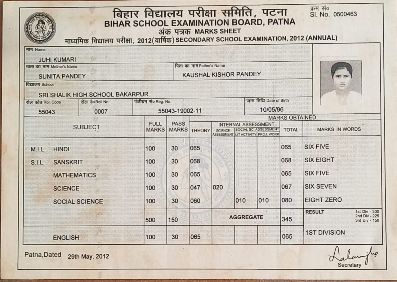 | Exam | Full Marks | Pass Marks | Marks Obtained |