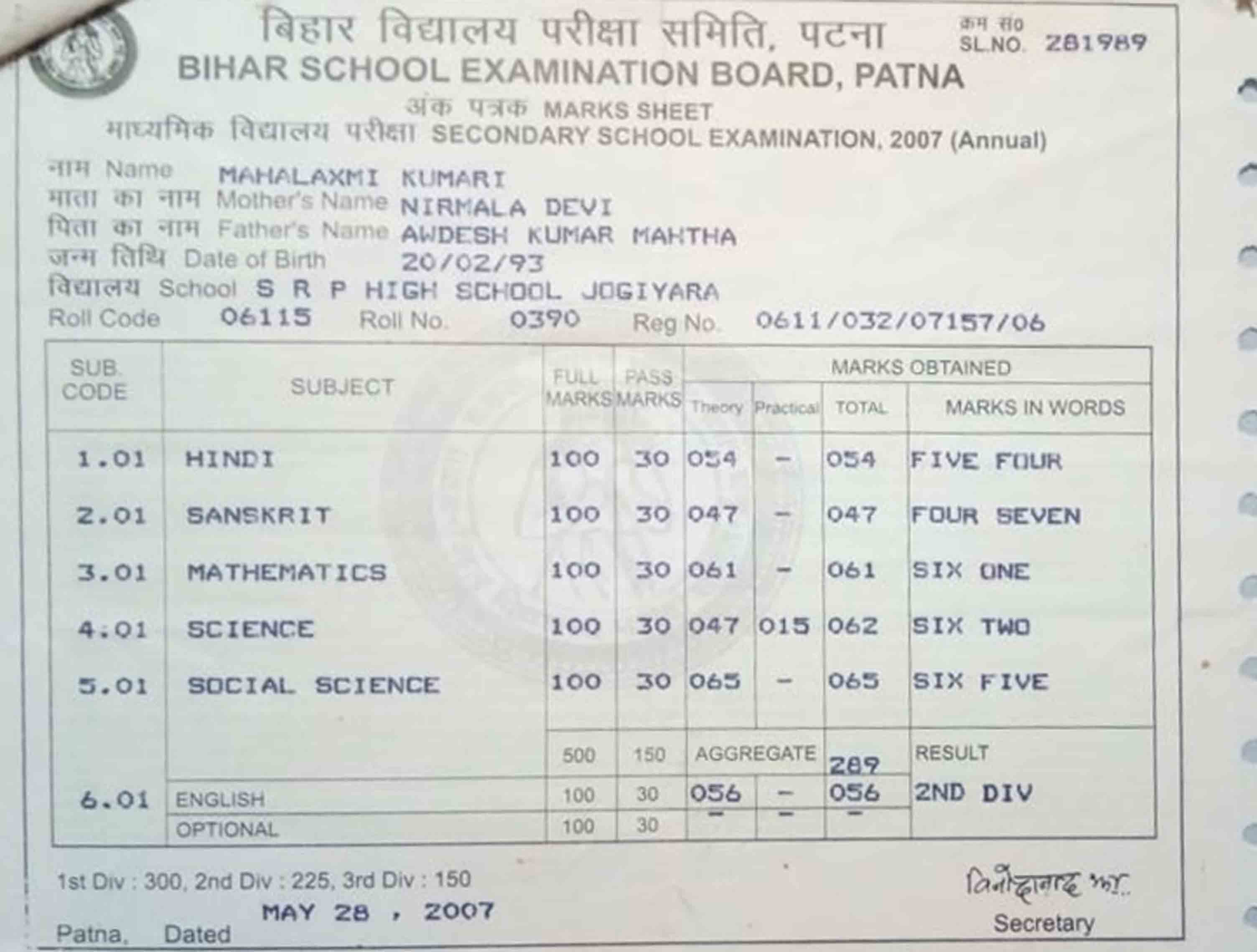 | Exam | Full Marks | Pass Marks | Marks Obtained |