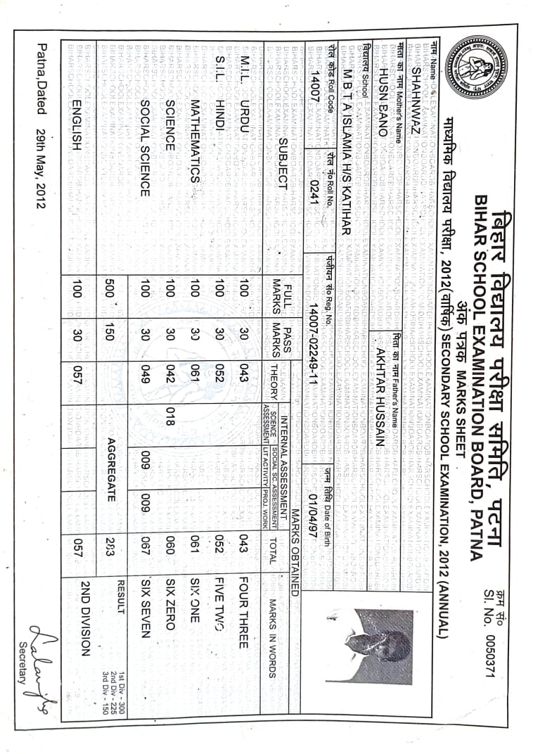 | Exam | Full Marks | Pass Marks | Marks Obtained |