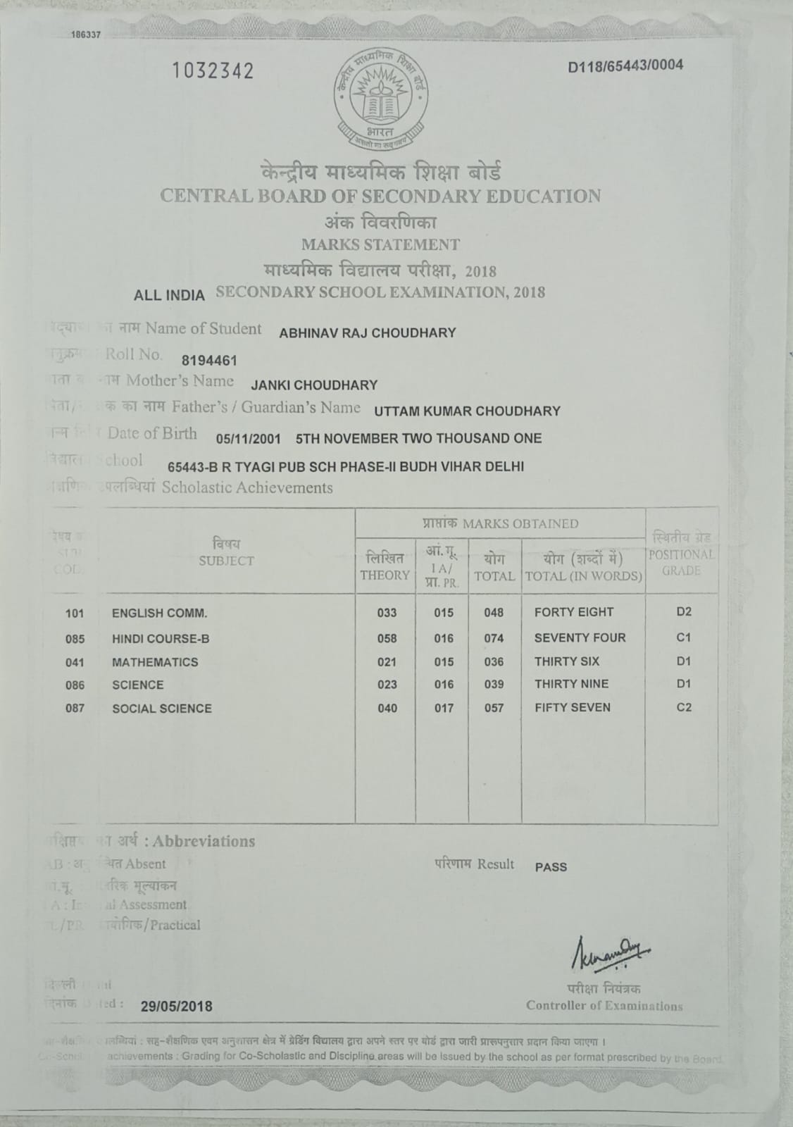 | : | Matric | |