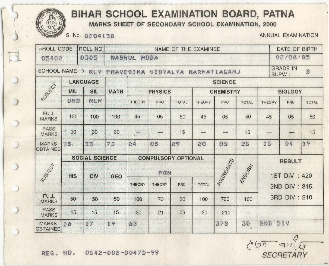 | Exam | Full Marks | Pass Marks | Marks Obtained |