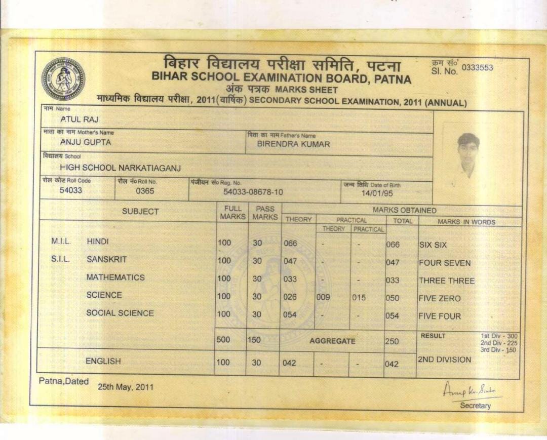 | Exam | Full Marks | Pass Marks | Marks Obtained |