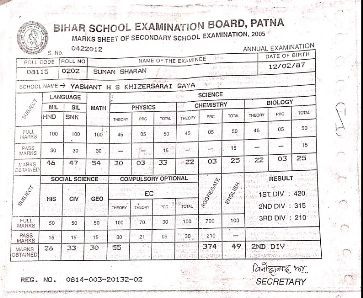 | Exam | Full Marks | Pass Marks | Marks Obtained |