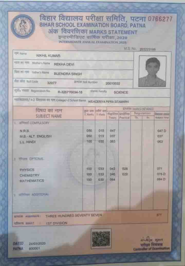 | Exam | Full Marks | Pass Marks | Marks Obtained |