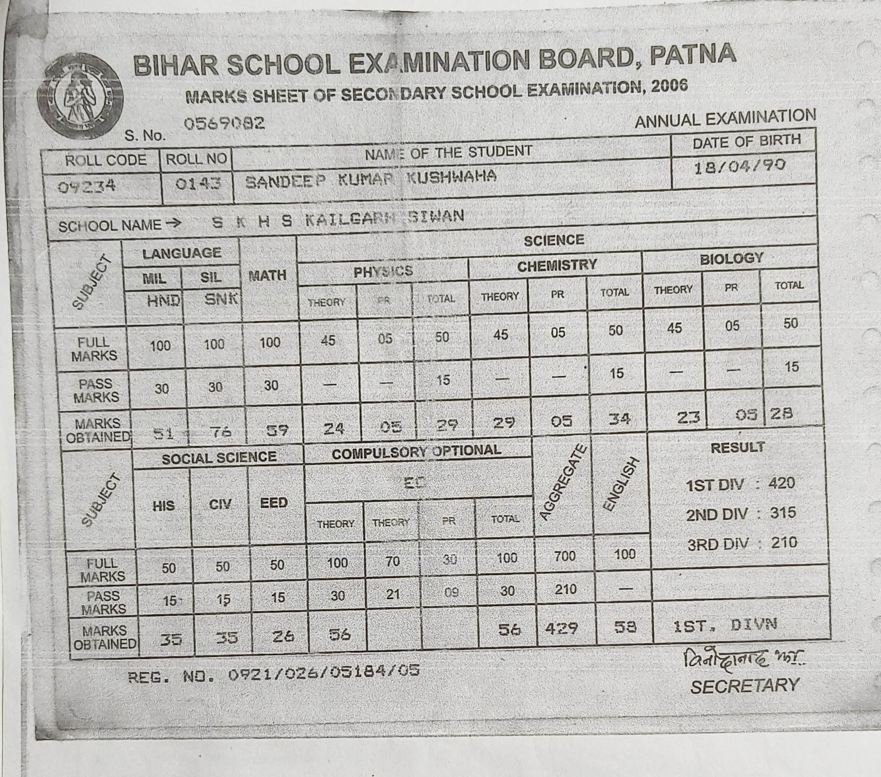| Exam | Full Marks | Pass Marks | Marks Obtained |