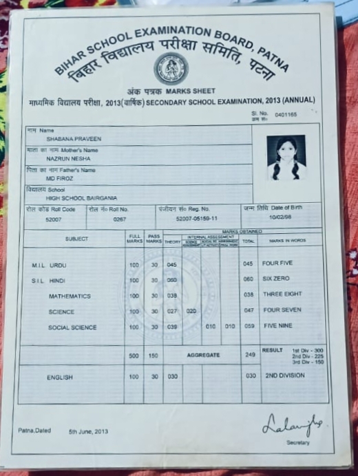| Exam | Full Marks | Pass Marks | Marks Obtained |
