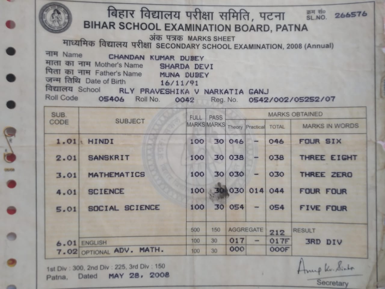 | Exam | Full Marks | Pass Marks | Marks Obtained |