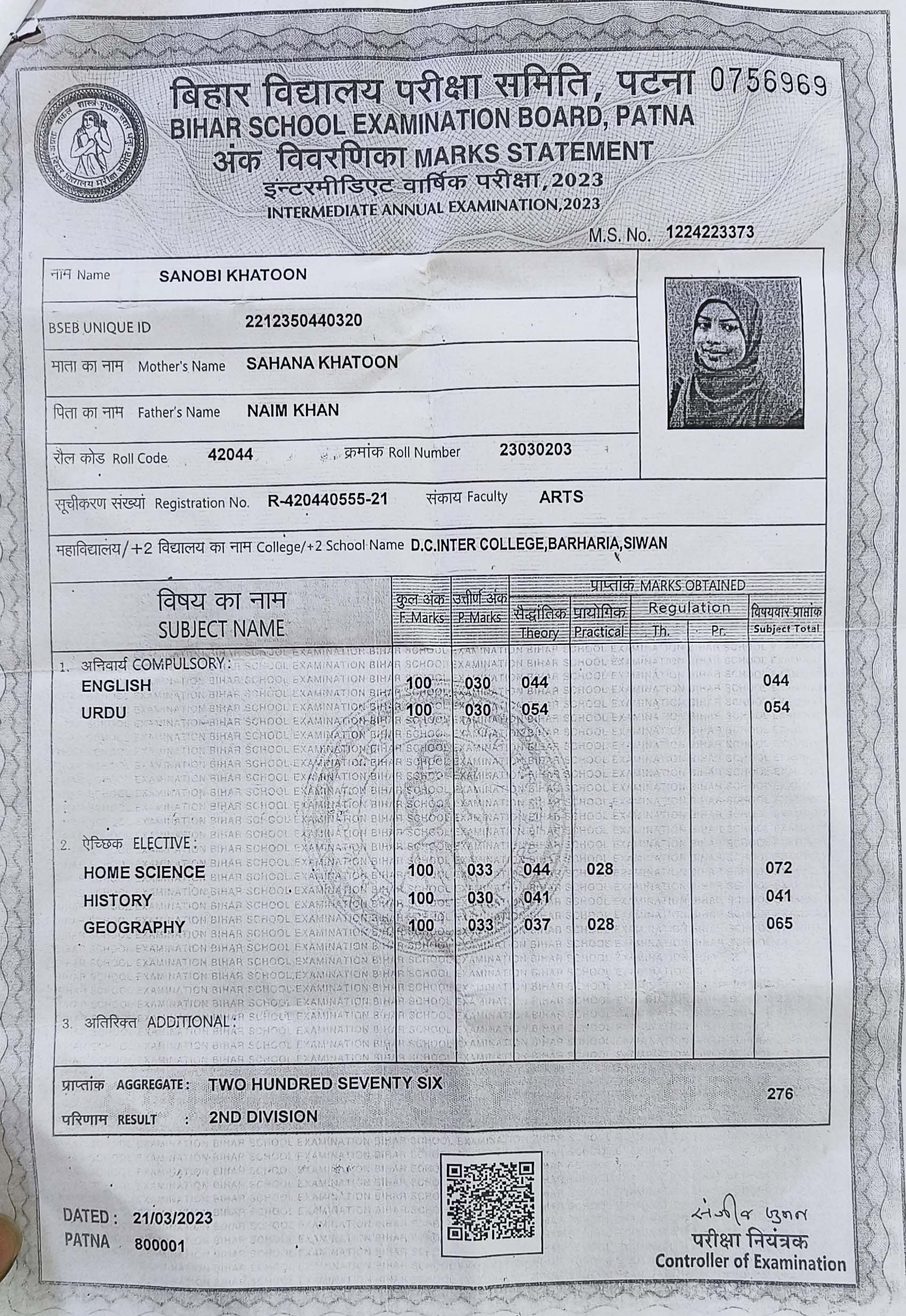 | Exam | Full Marks | Pass Marks | Marks Obtained |