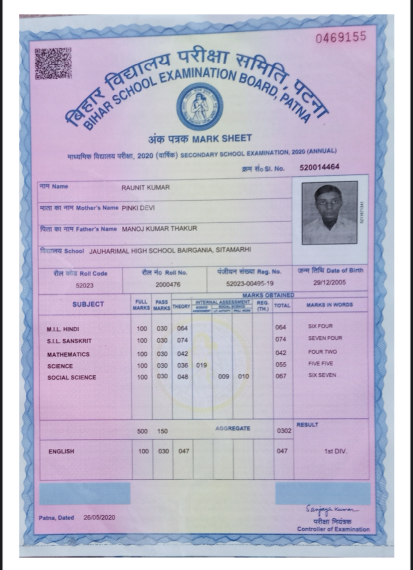 | Exam | Full Marks | Pass Marks | Marks Obtained |