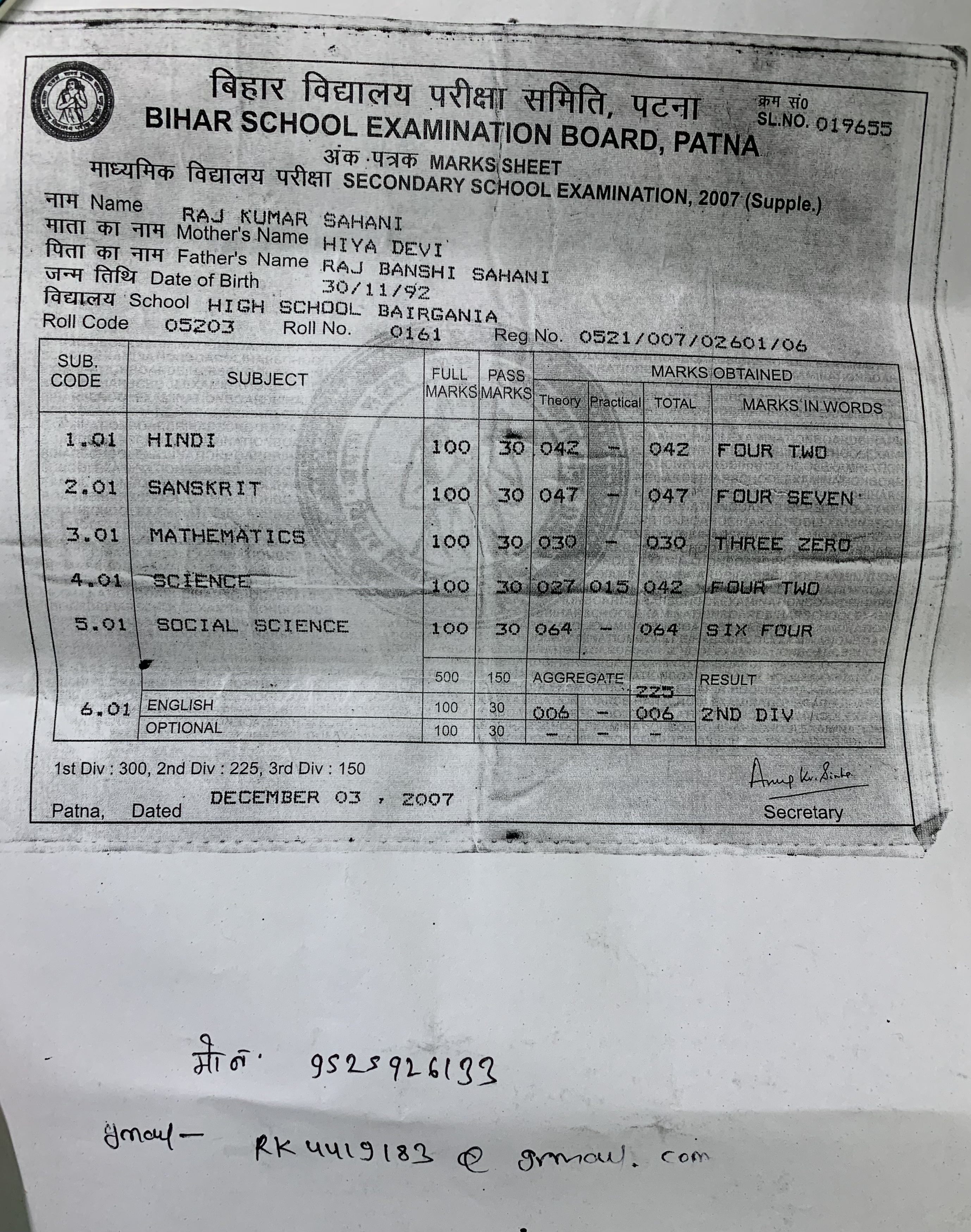 | : | Raj Banshi Sahani | |