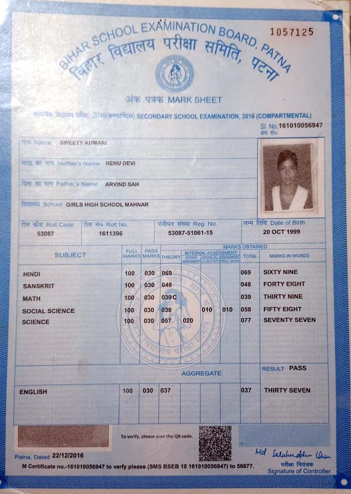 | Exam | Full Marks | Pass Marks | Marks Obtained |