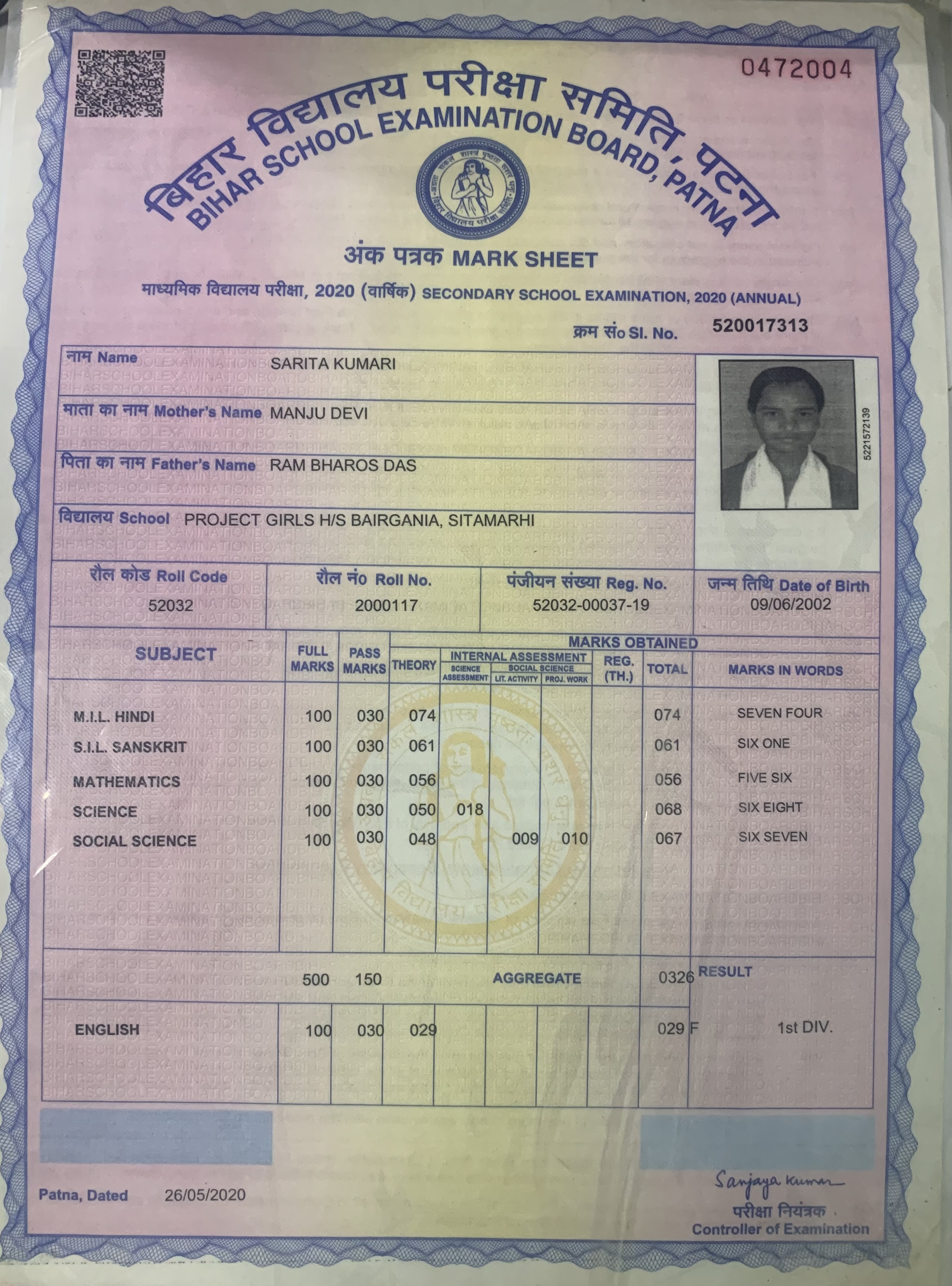 | Exam | Full Marks | Pass Marks | Marks Obtained |