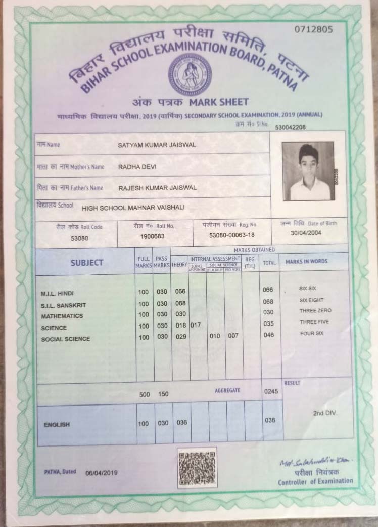 | Exam | Full Marks | Pass Marks | Marks Obtained |