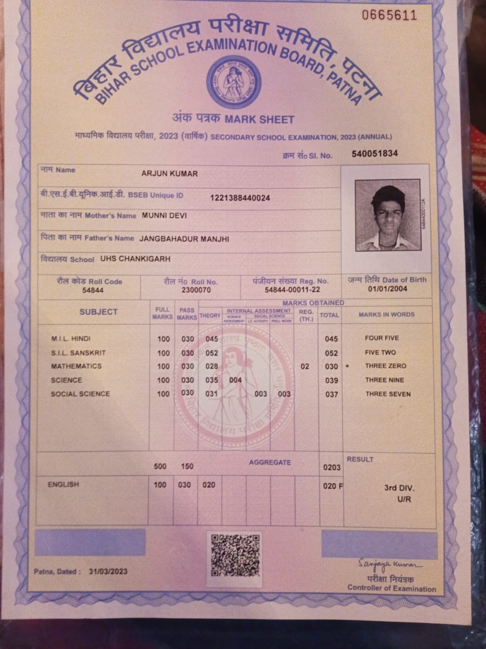 | Exam | Full Marks | Pass Marks | Marks Obtained |