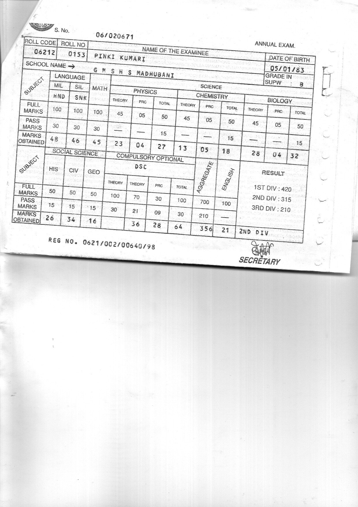 | Exam | Full Marks | Pass Marks | Marks Obtained |