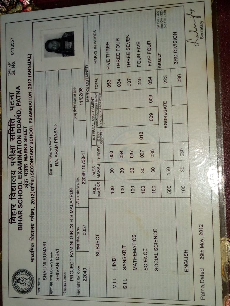 | Exam | Full Marks | Pass Marks | Marks Obtained |