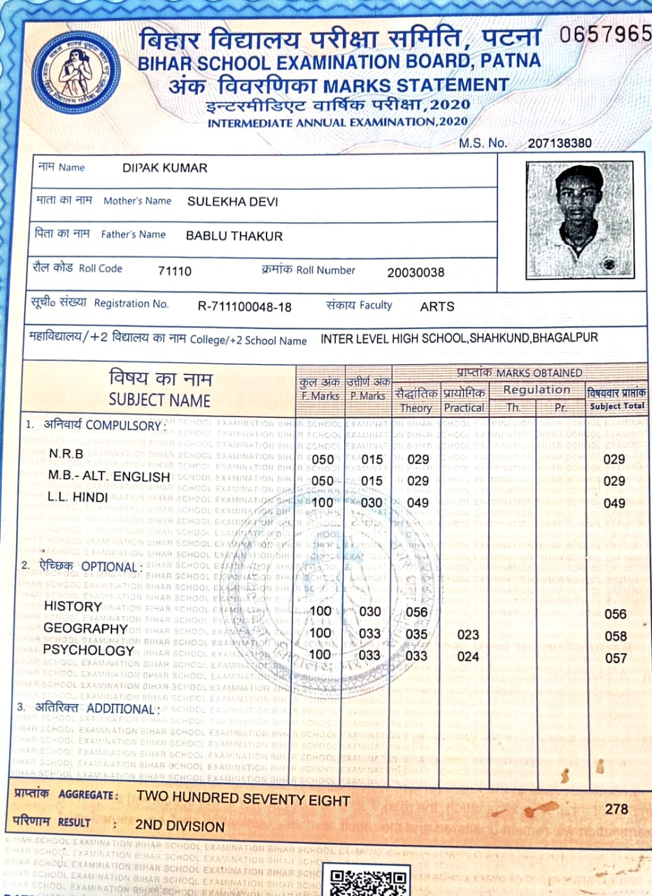 | Exam | Full Marks | Pass Marks | Marks Obtained |