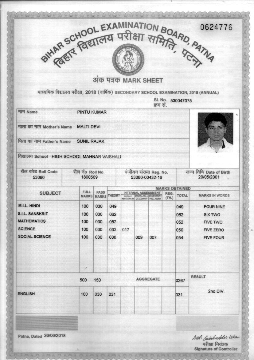 | Exam | Full Marks | Pass Marks | Marks Obtained |