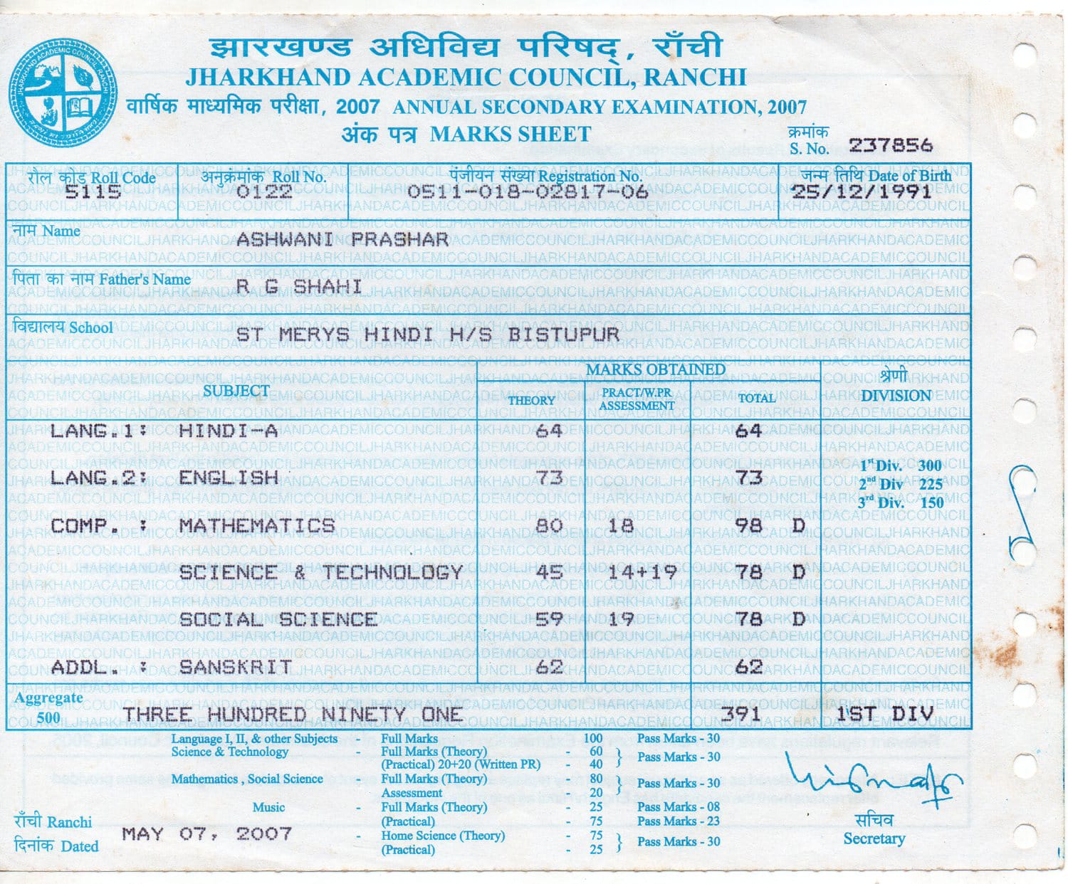 | Exam | Full Marks | Pass Marks | Marks Obtained |