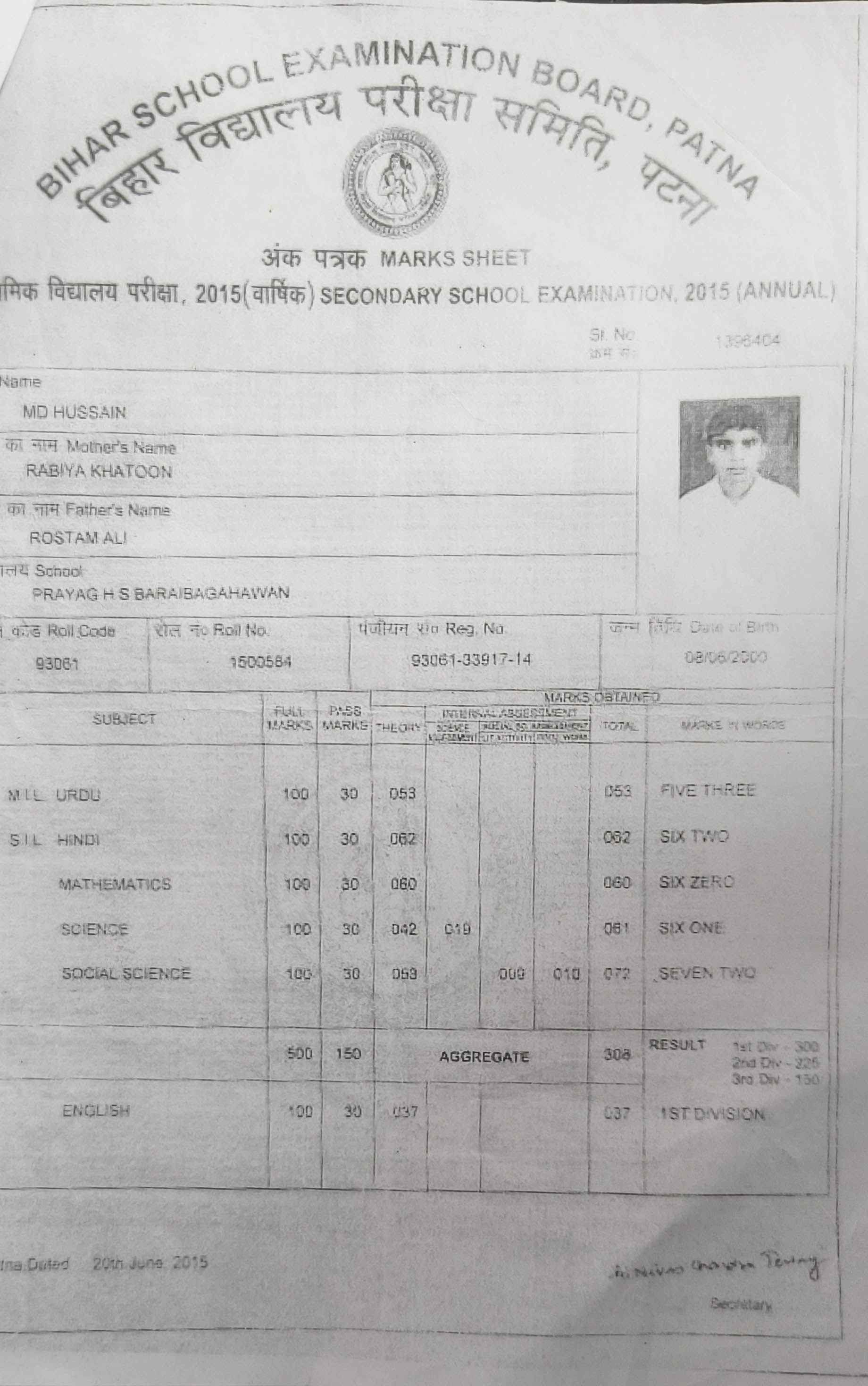 | Exam | Full Marks | Pass Marks | Marks Obtained |