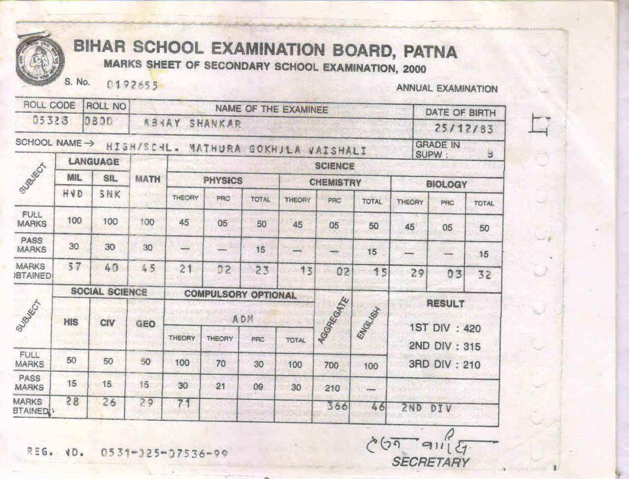 | Exam | Full Marks | Pass Marks | Marks Obtained |