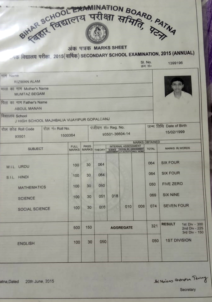 | Exam | Full Marks | Pass Marks | Marks Obtained |