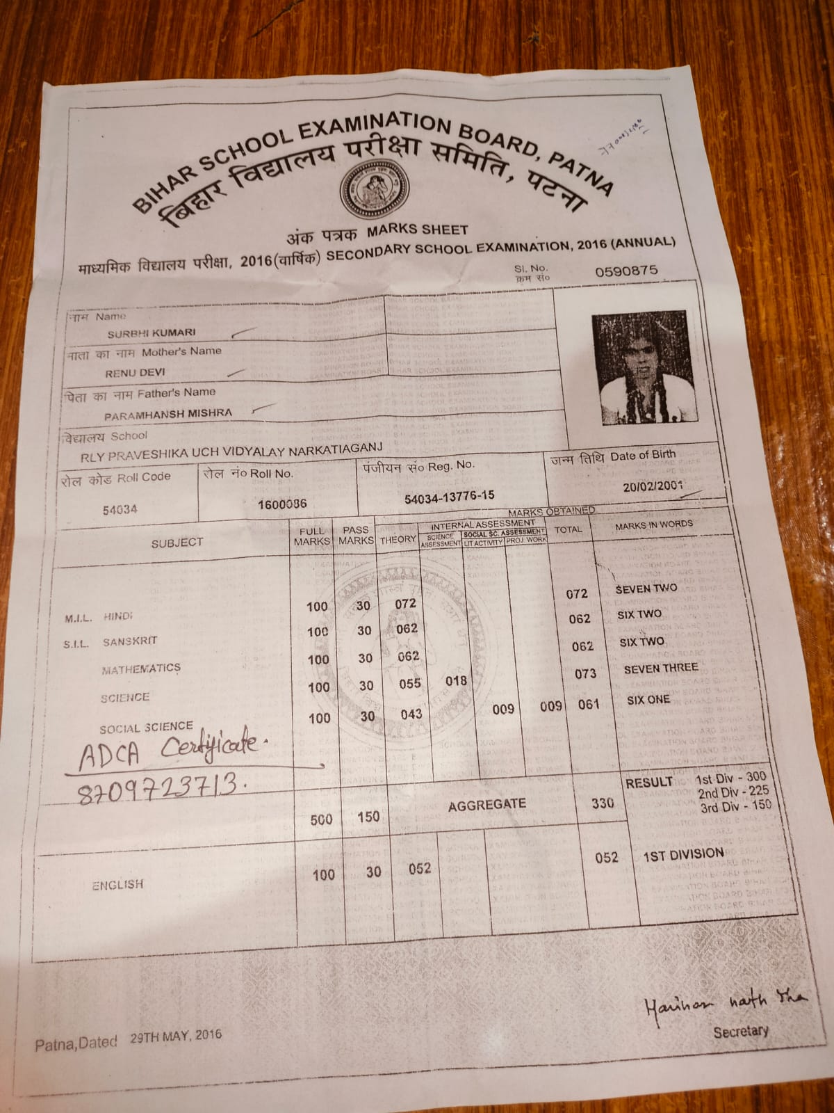 | Exam | Full Marks | Pass Marks | Marks Obtained |