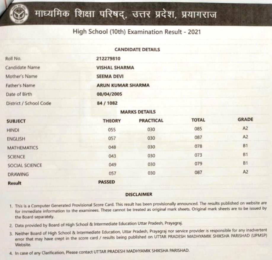 | Exam | Full Marks | Pass Marks | Marks Obtained |