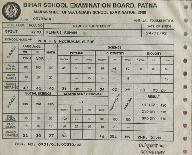 | Exam | Full Marks | Pass Marks | Marks Obtained |