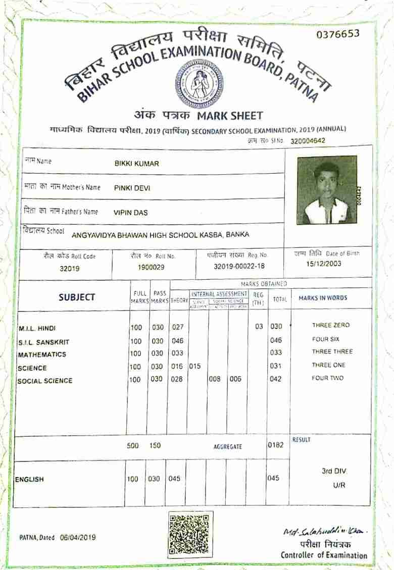 | Exam | Full Marks | Pass Marks | Marks Obtained |