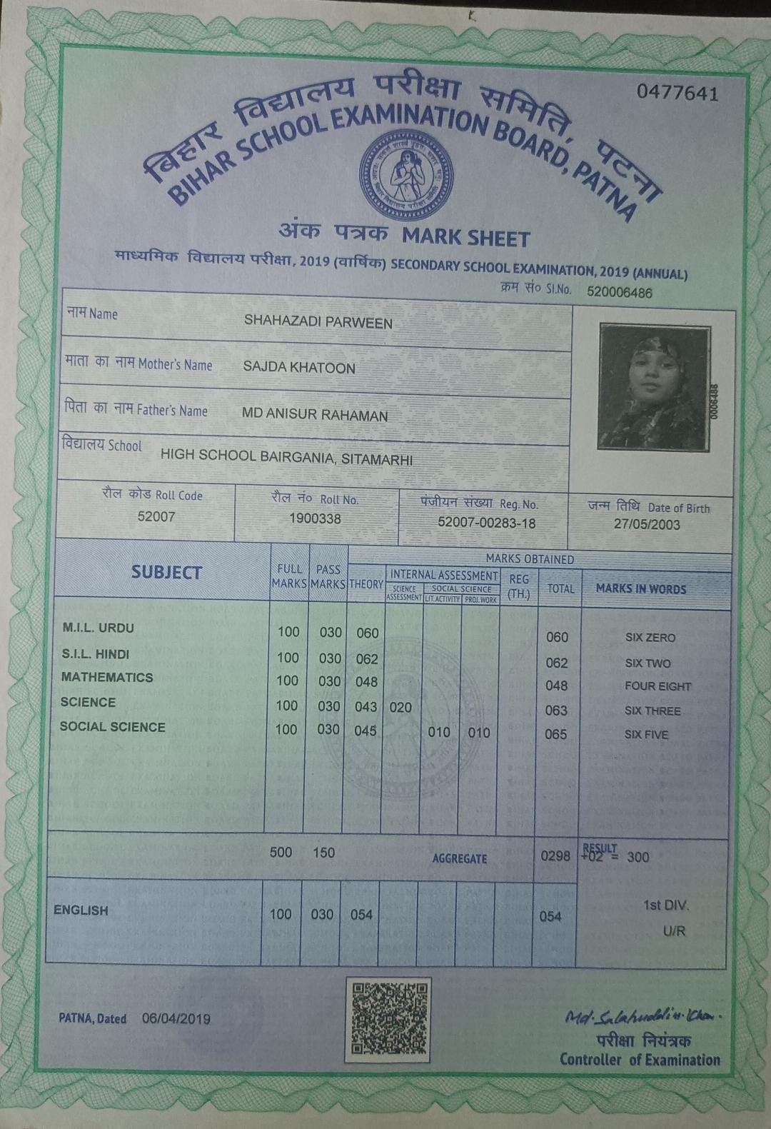| Exam | Full Marks | Pass Marks | Marks Obtained |