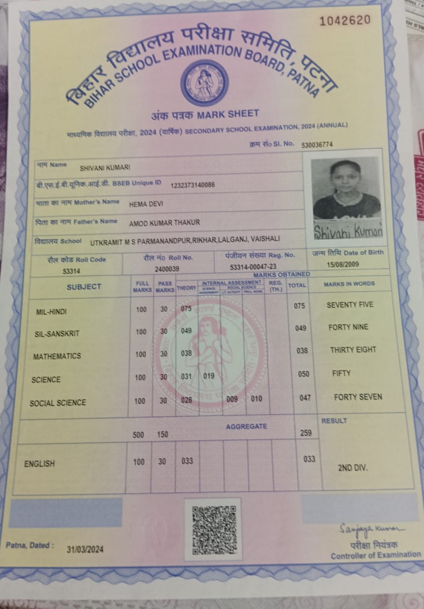 | Exam | Full Marks | Pass Marks | Marks Obtained |