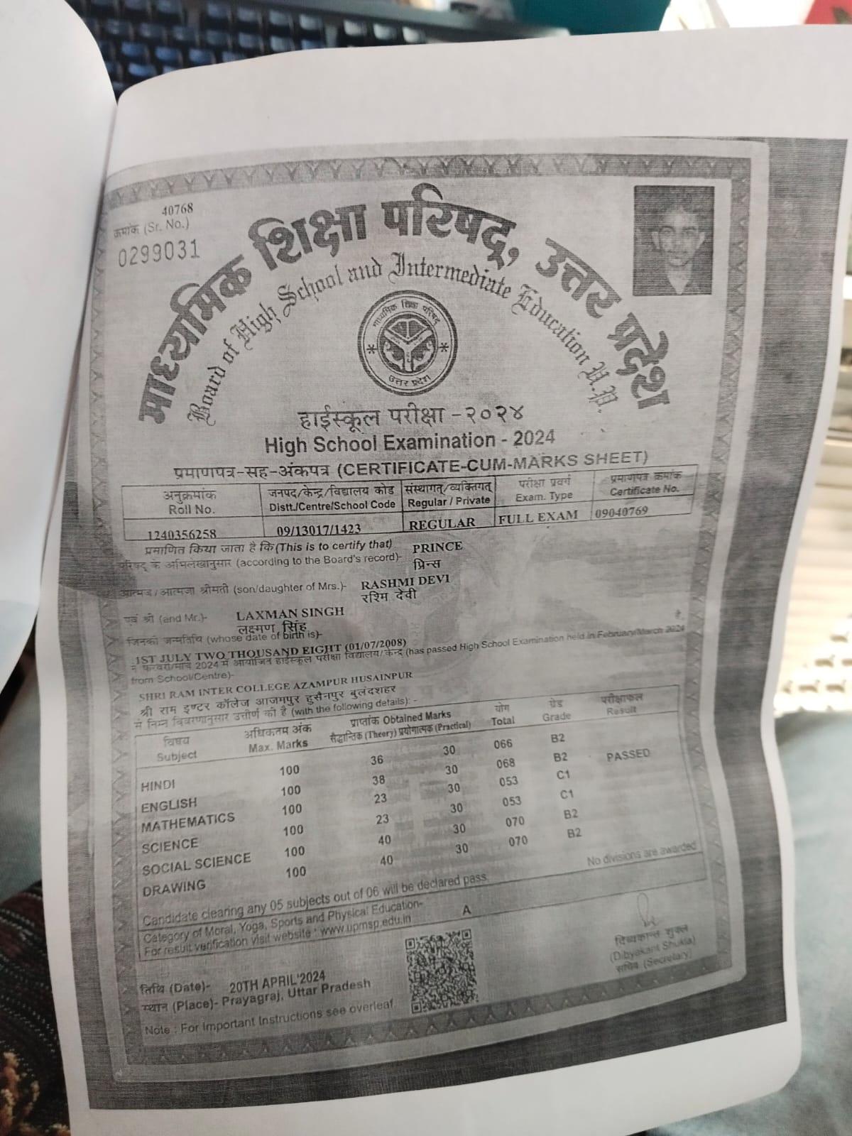 | Exam | Full Marks | Pass Marks | Marks Obtained |