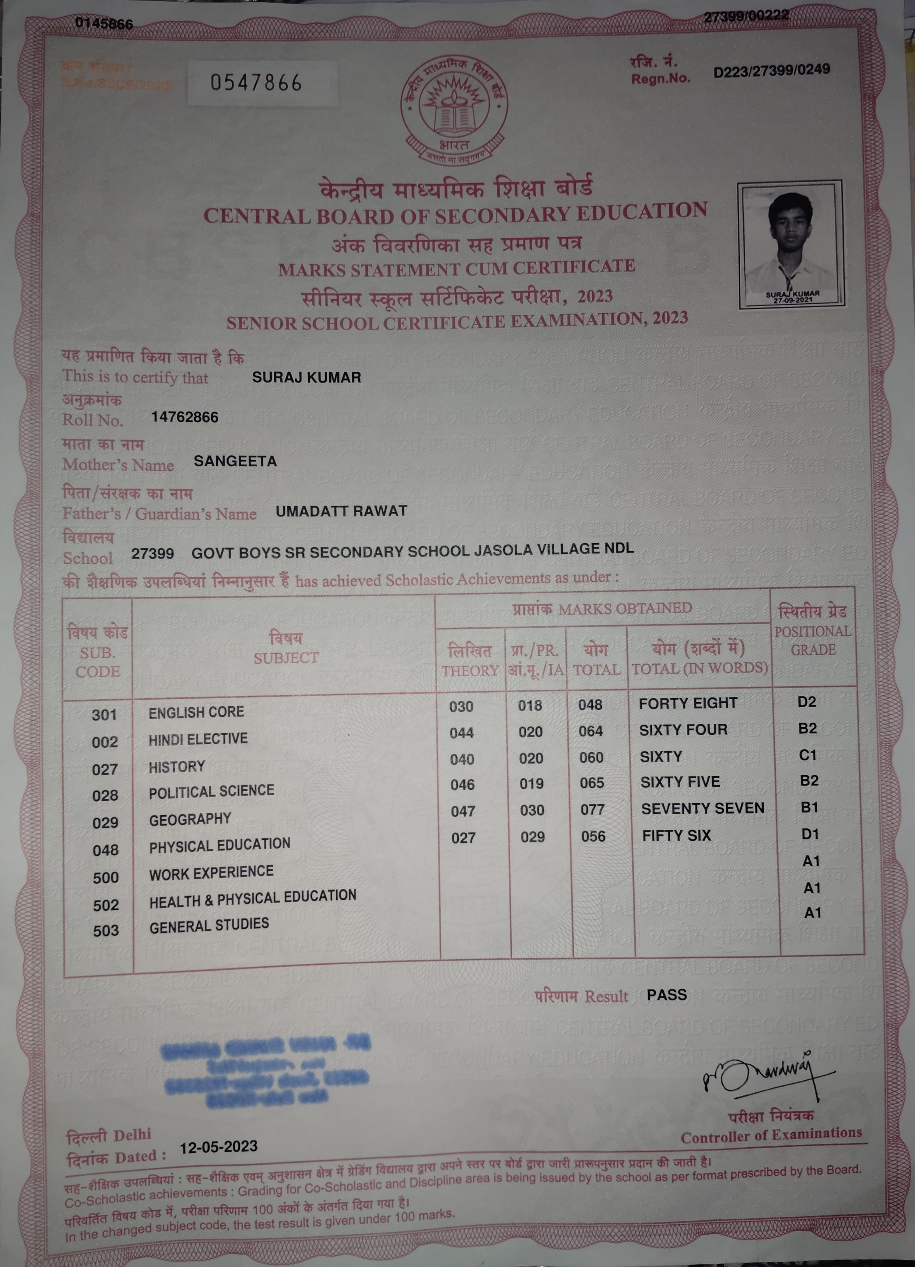 | Exam | Full Marks | Pass Marks | Marks Obtained |