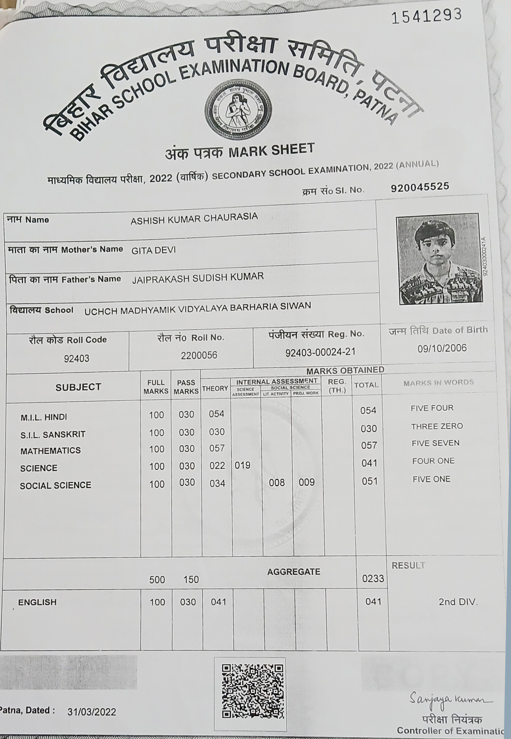 | Exam | Full Marks | Pass Marks | Marks Obtained |