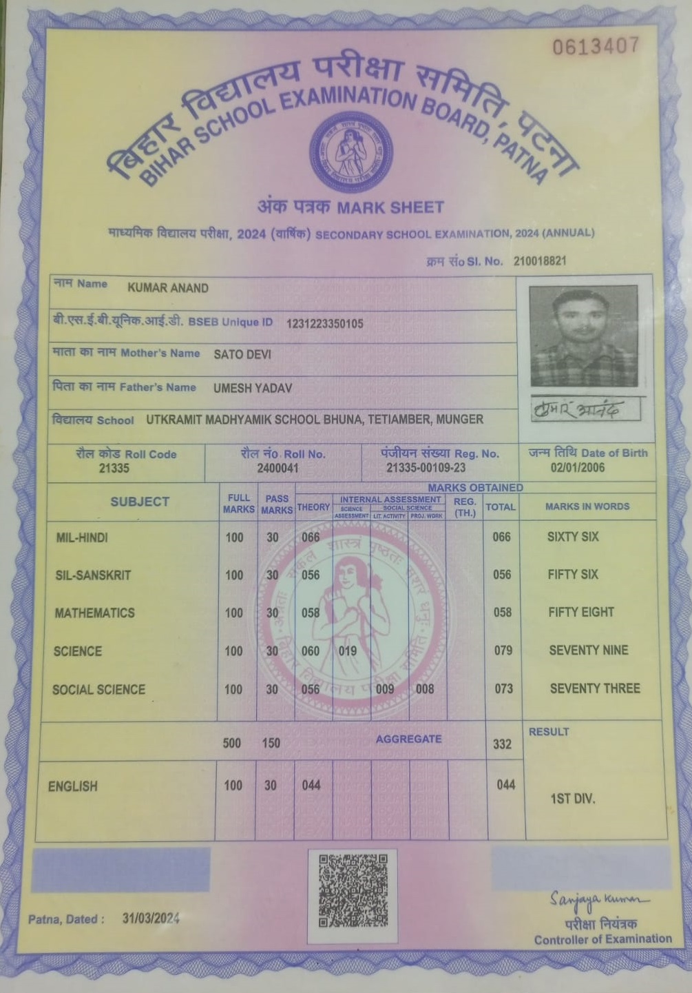 | Exam | Full Marks | Pass Marks | Marks Obtained |