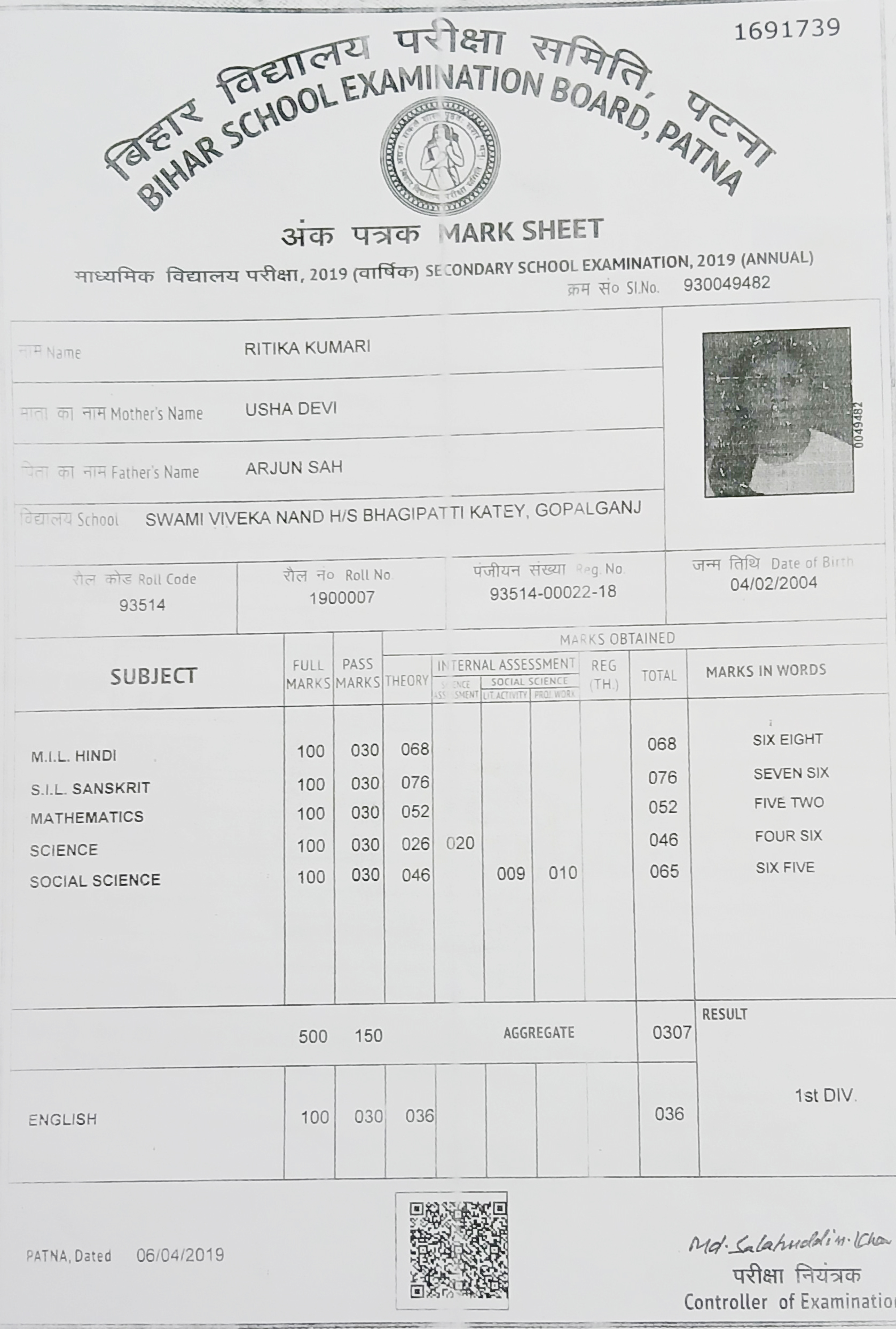 | Exam | Full Marks | Pass Marks | Marks Obtained |