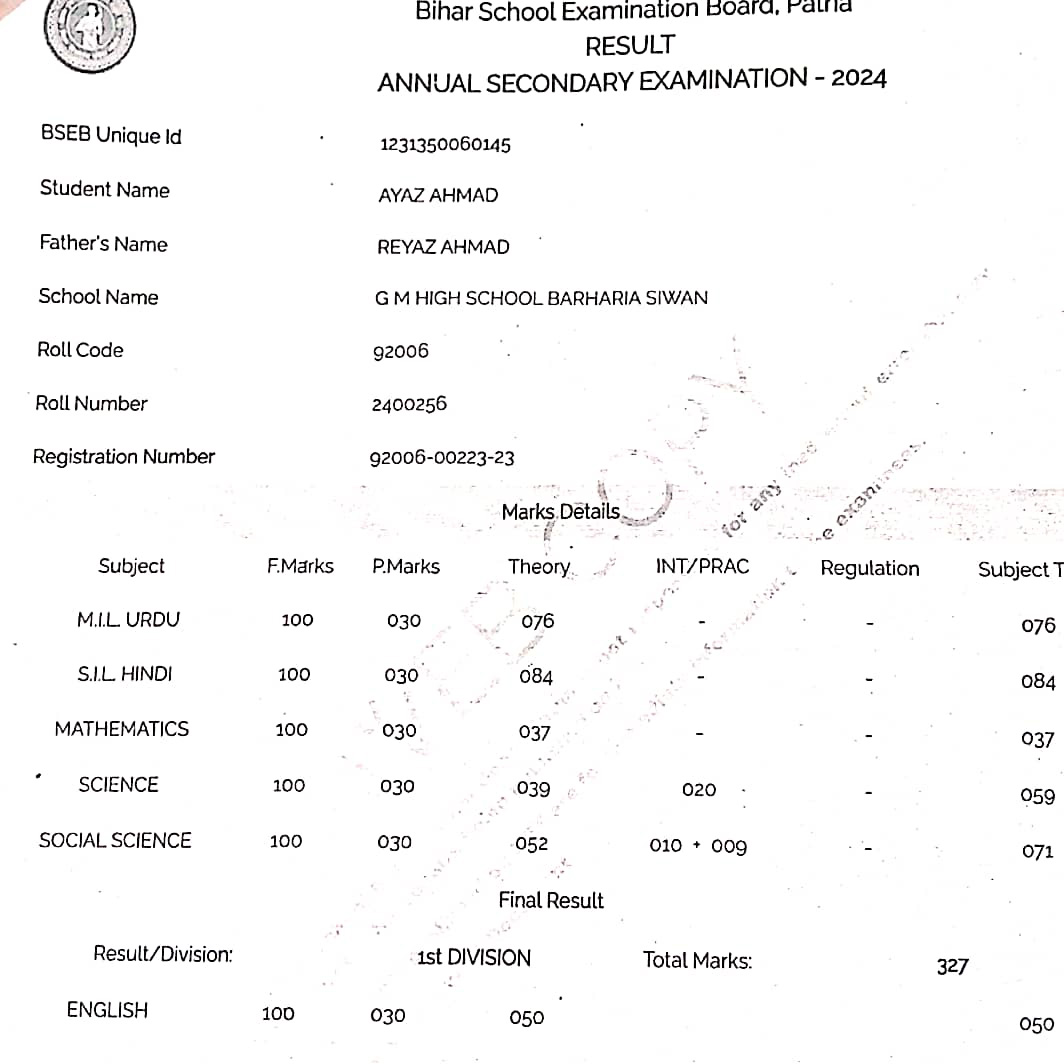 | Exam | Full Marks | Pass Marks | Marks Obtained |