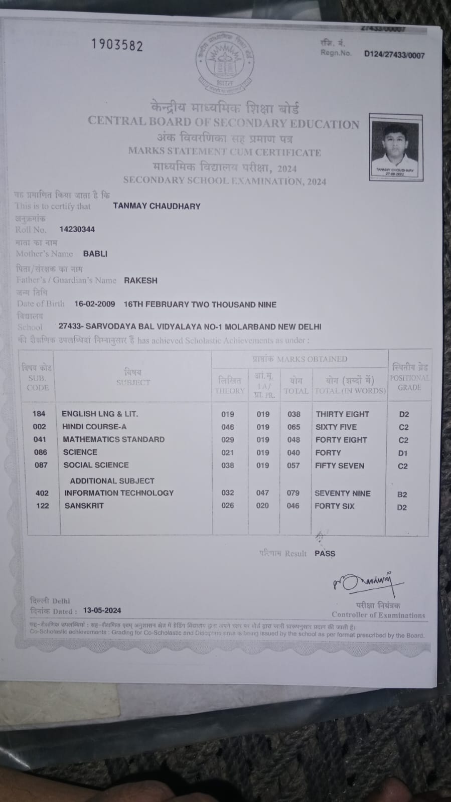| Exam | Full Marks | Pass Marks | Marks Obtained |