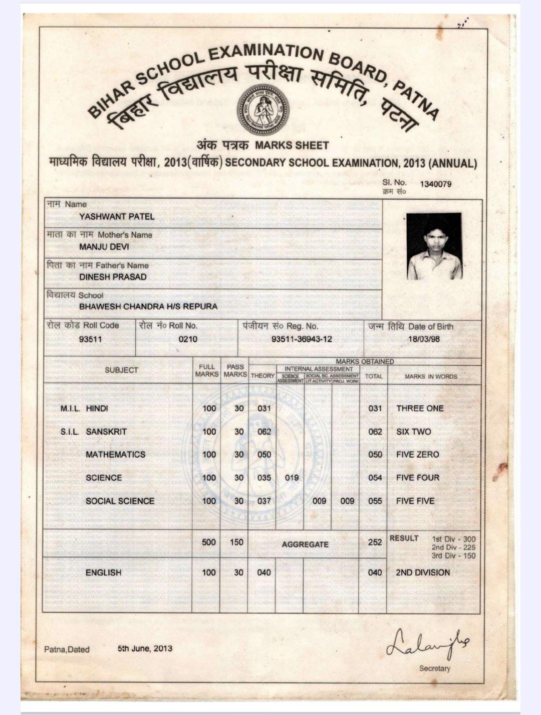 | Exam | Full Marks | Pass Marks | Marks Obtained |