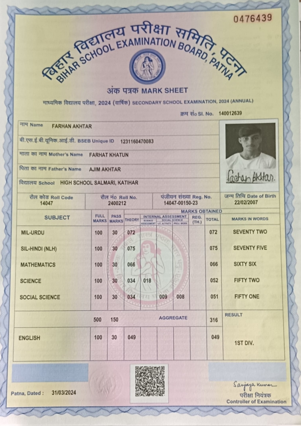 | Exam | Full Marks | Pass Marks | Marks Obtained |