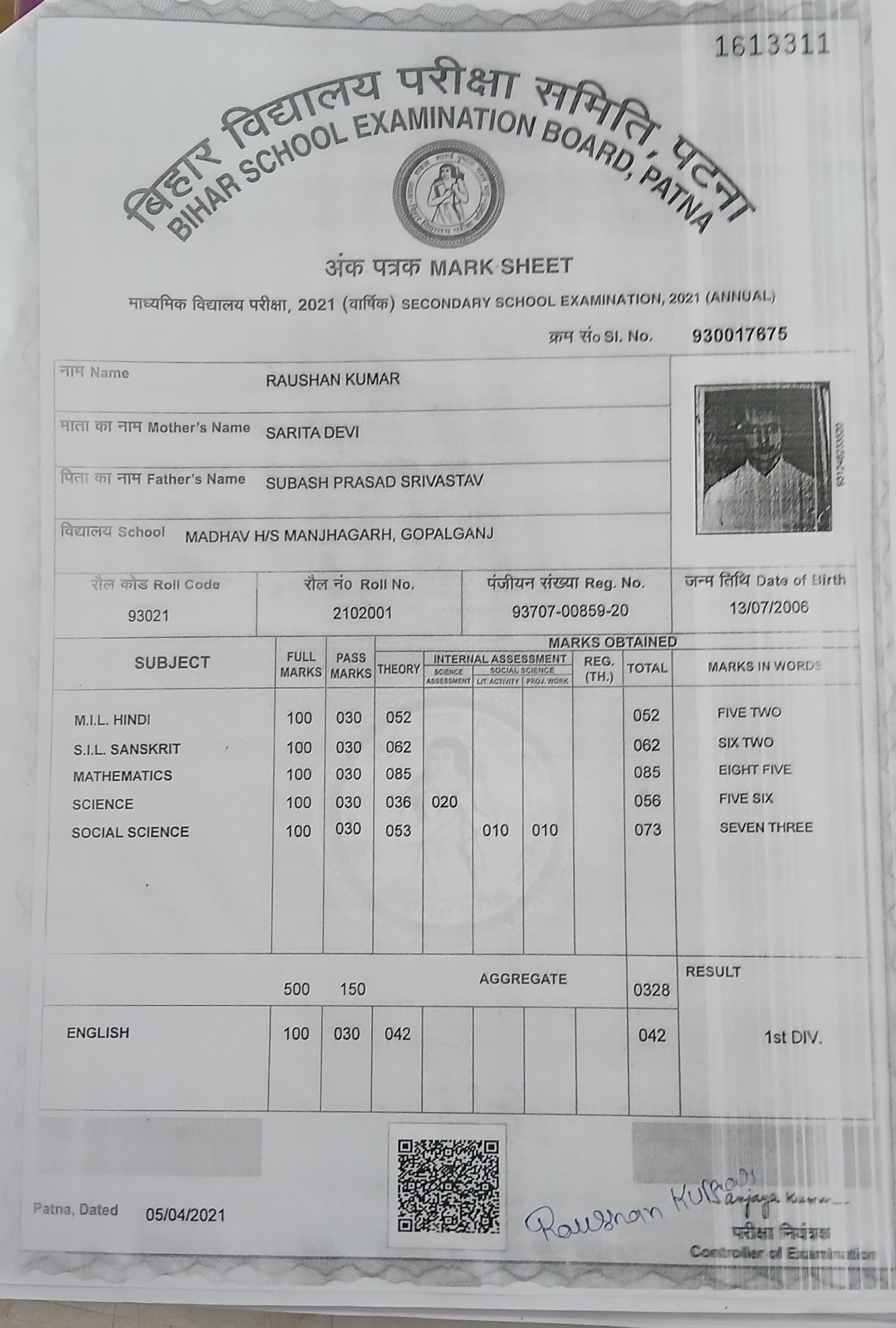 | Exam | Full Marks | Pass Marks | Marks Obtained |