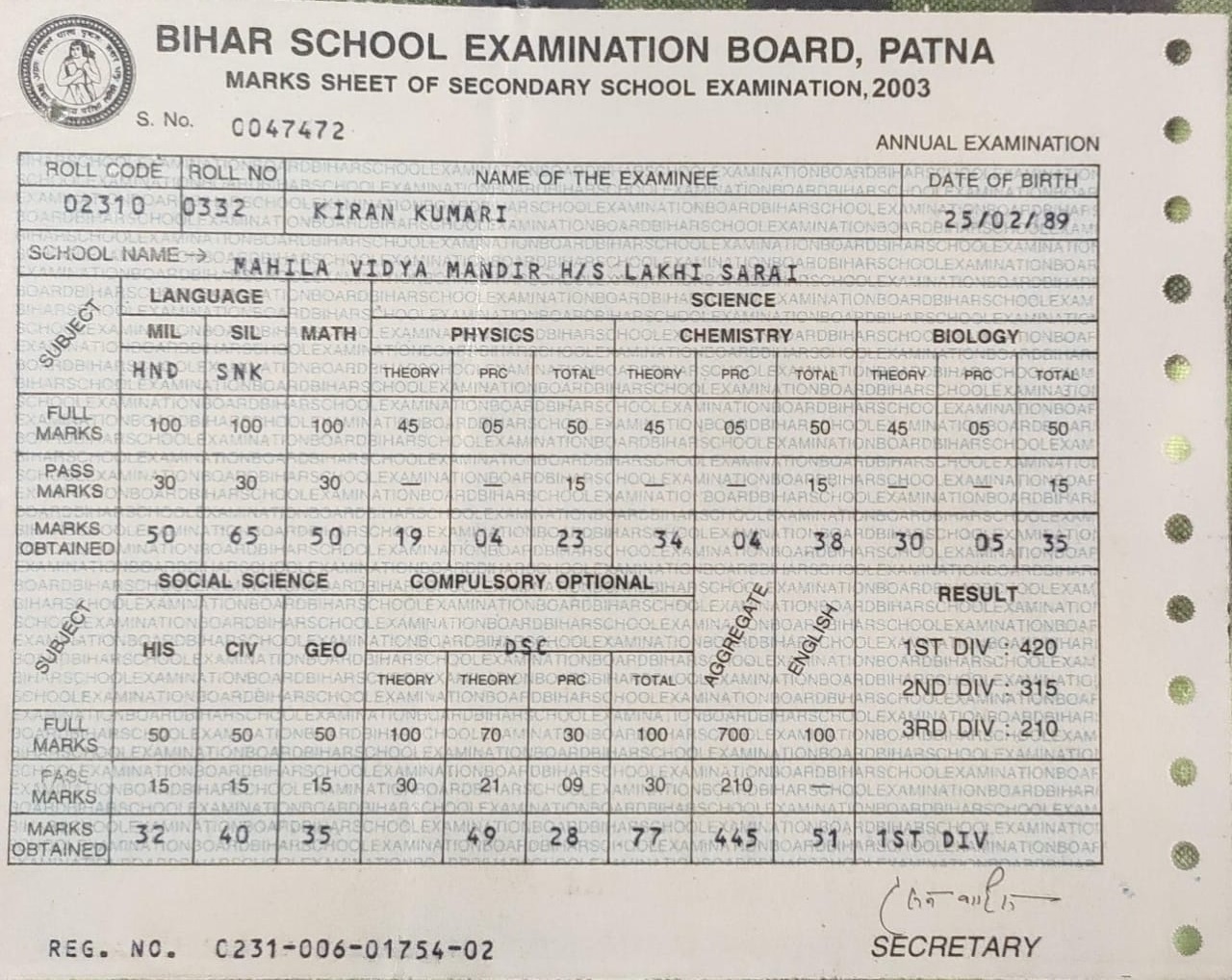 | Exam | Full Marks | Pass Marks | Marks Obtained |