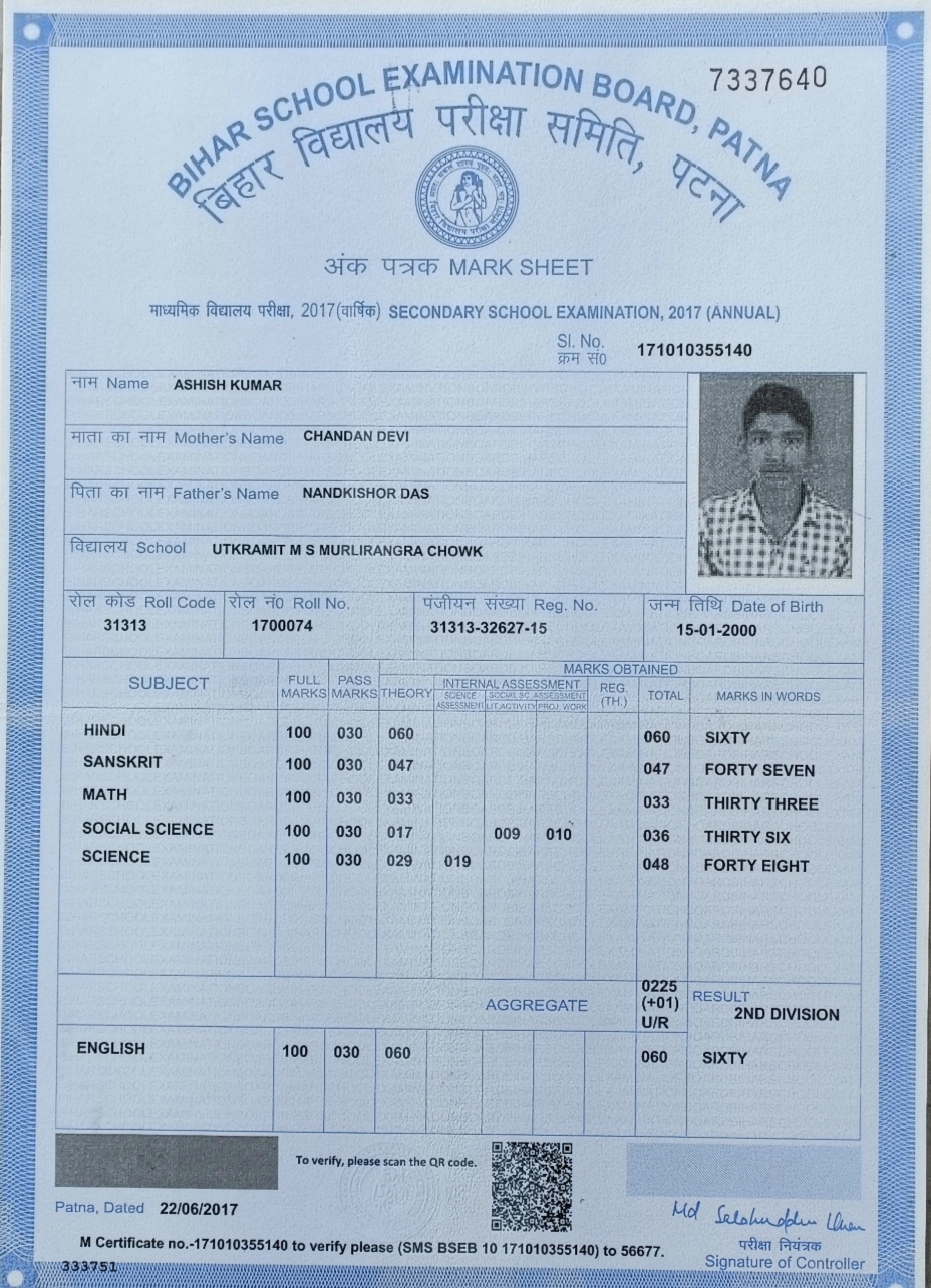 | Exam | Full Marks | Pass Marks | Marks Obtained |