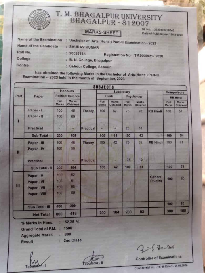 | Exam | Full Marks | Pass Marks | Marks Obtained |
