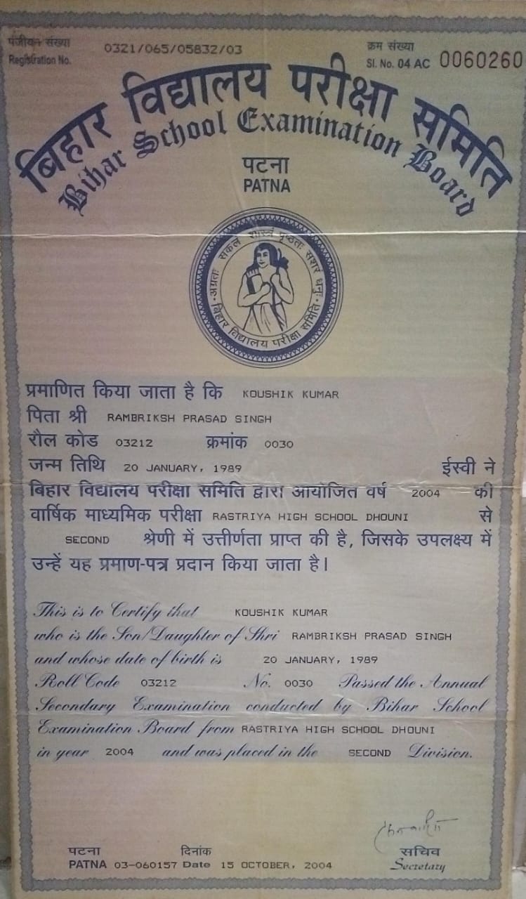 | Exam | Full Marks | Pass Marks | Marks Obtained |