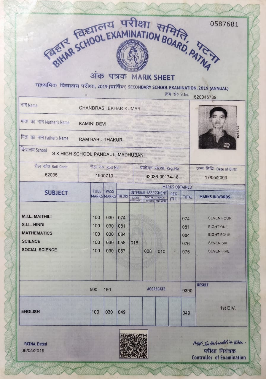 | Exam | Full Marks | Pass Marks | Marks Obtained |