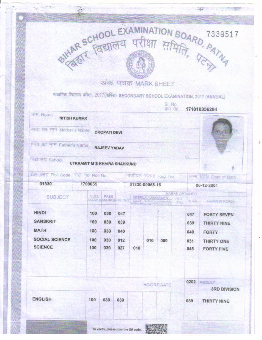 | Exam | Full Marks | Pass Marks | Marks Obtained |