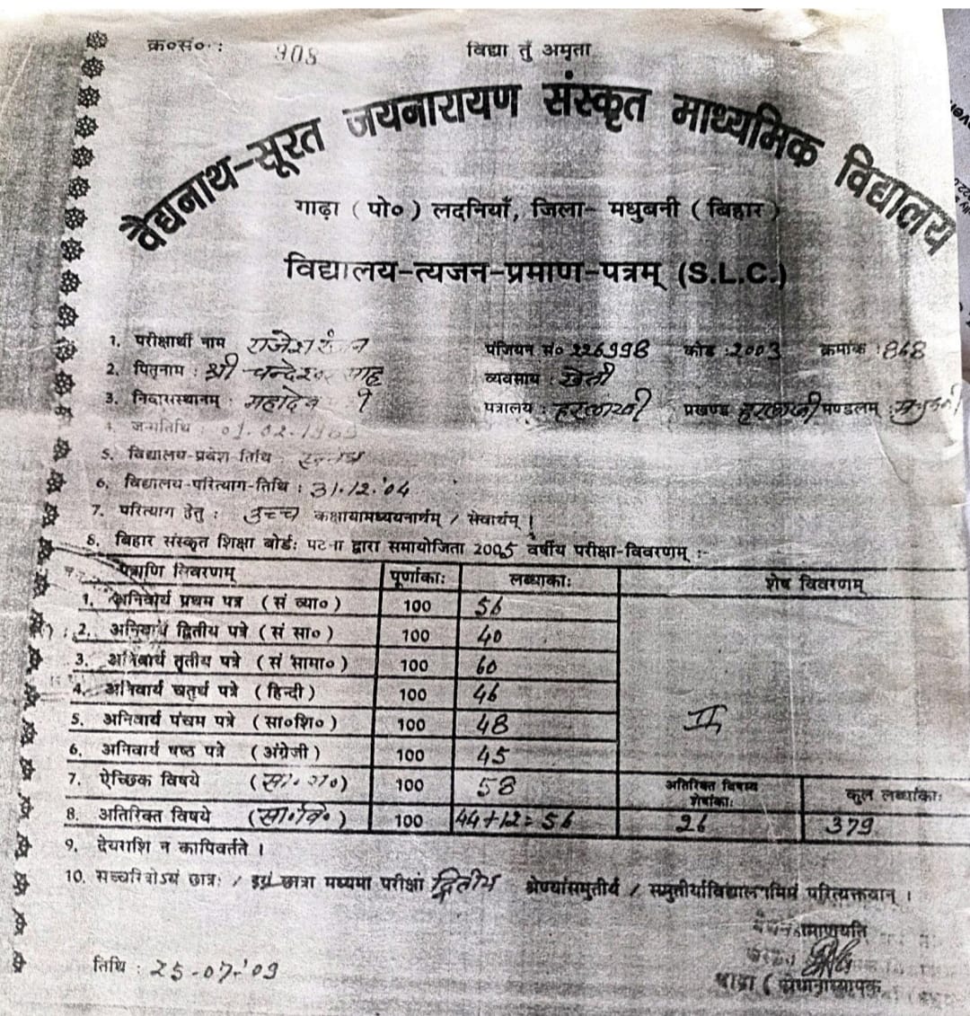 | Exam | Full Marks | Pass Marks | Marks Obtained |